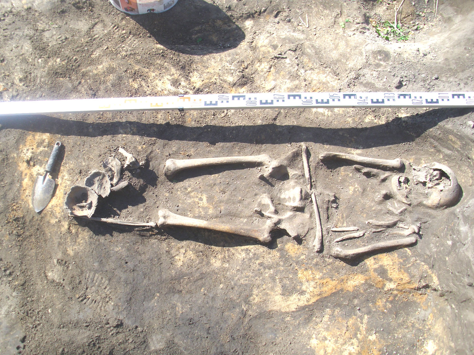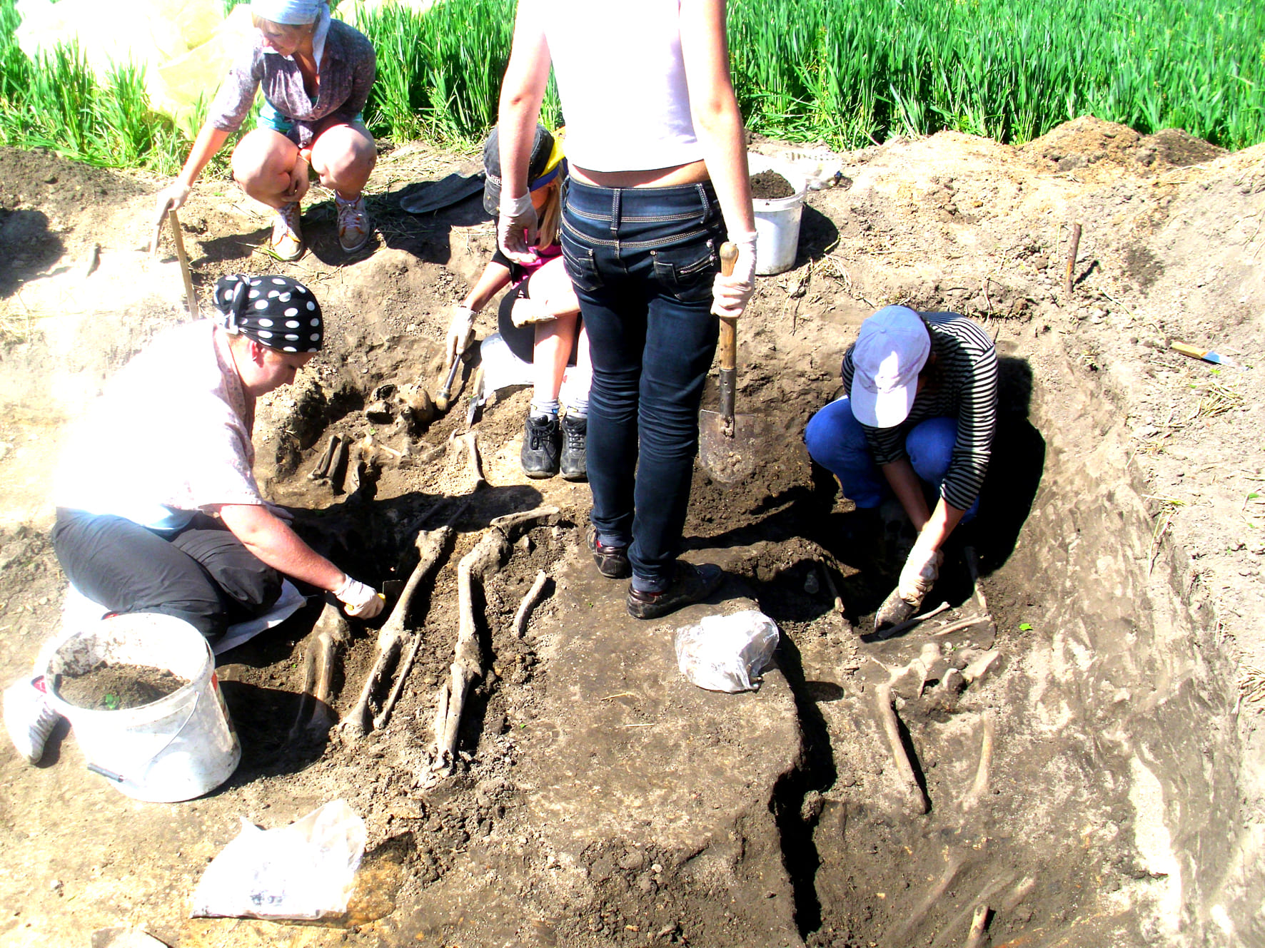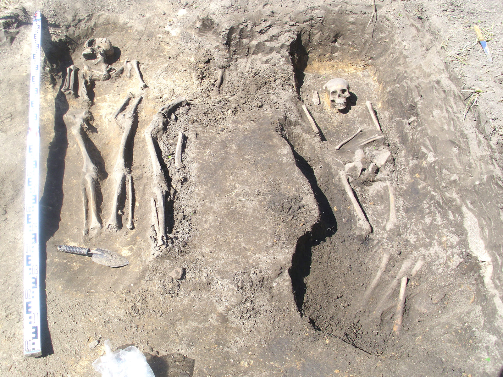 У 1975 г. у паўночна-заходняй частцы селішча 1 былі выяўлены следы грунтавых магілак. Тады было даследавана 18 шкілетаў. Там былі пахаваны дарослыя і дзеці. У 2012 г. было даследавана яшчэ 5 пахаванняў. Усе яны знаходзіліся ў неглыбокіх ямах, закапаных у культурны пласт селішча. Шкілеты ляжалі на спіне ў выцягнутым табары галавой на захад. Ніякага інвентару ў нябожчыкаў не было. У выніку даследавання суседніх аб'ектаў было высветлена, што ўсе знойдзеныя пахаванні належаць да могілак, якія функцыянавалі ў XV–XVI стст. у гэтай частцы селішча. Недалёка ад пахаванняў быў знойдзены цэлы гаршчок, у якім, верагодна, прыносілі на магілкі памінальную страву.