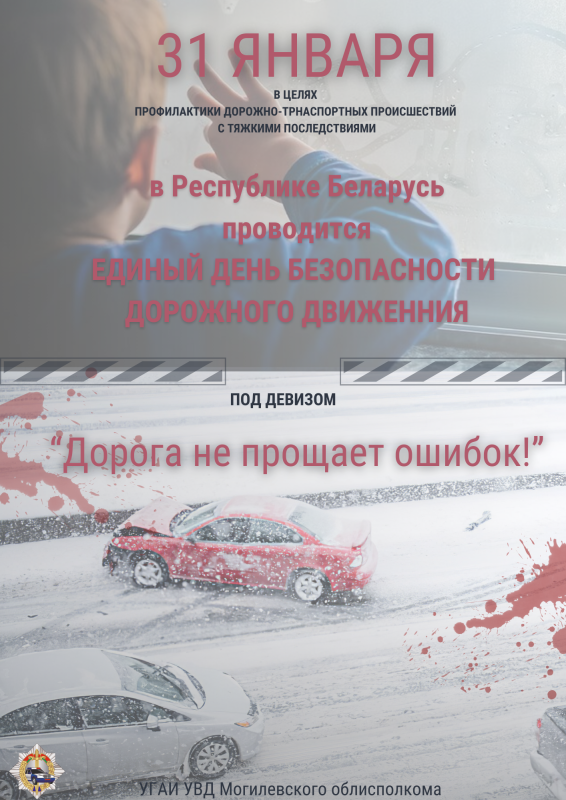 «Дорога не прощает ошибок!» – под таким названием 31 января 2025 года пройдет Единый день безопасности дорожного движения, посвященный теме пропаганды соблюдения ПДД всеми участниками дорожного движения.