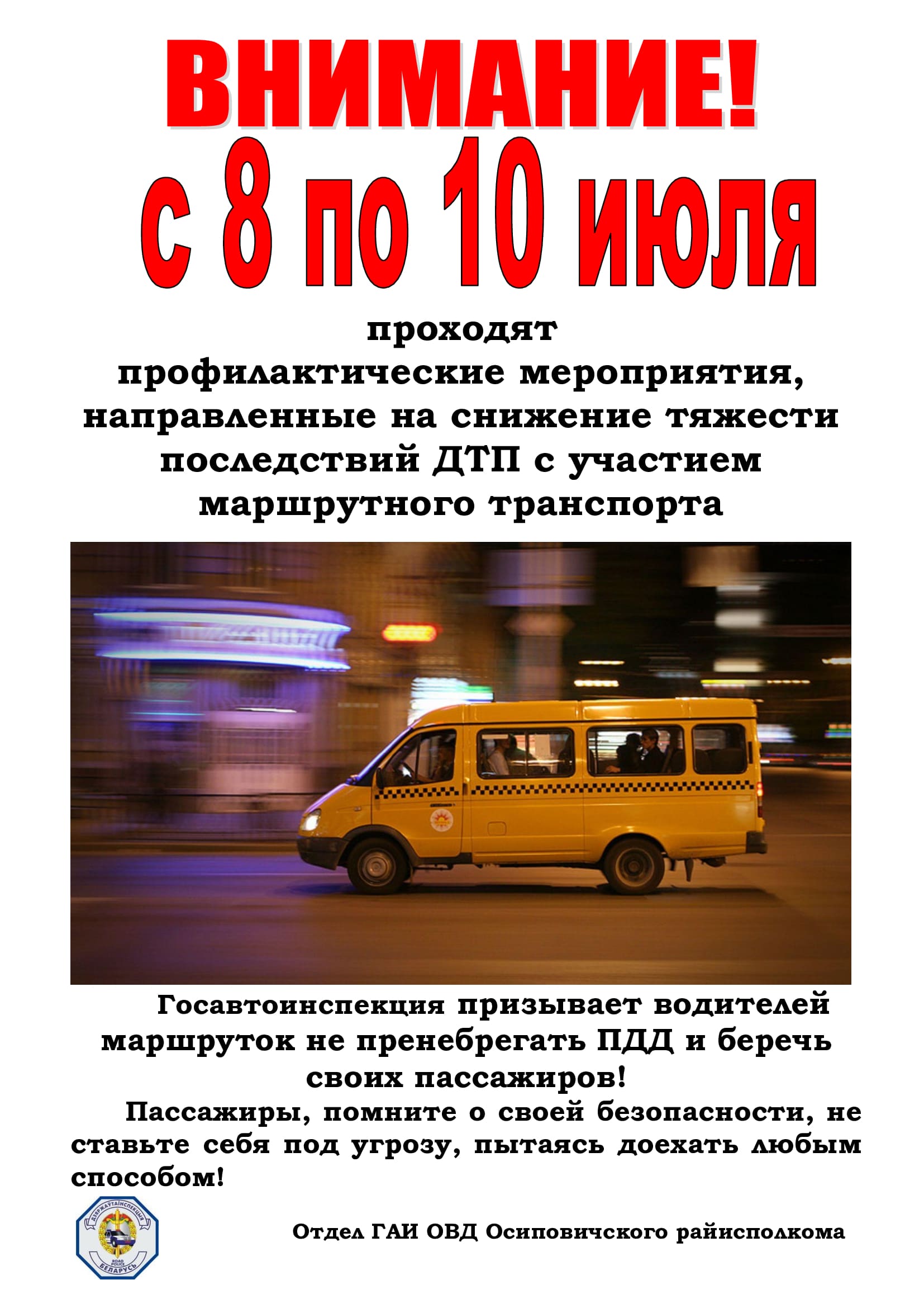 С 8 по 10 июля проходят профилактические мероприятия, направленные на снижение тяжести последствий ДТП с участием маршрутного транспорта