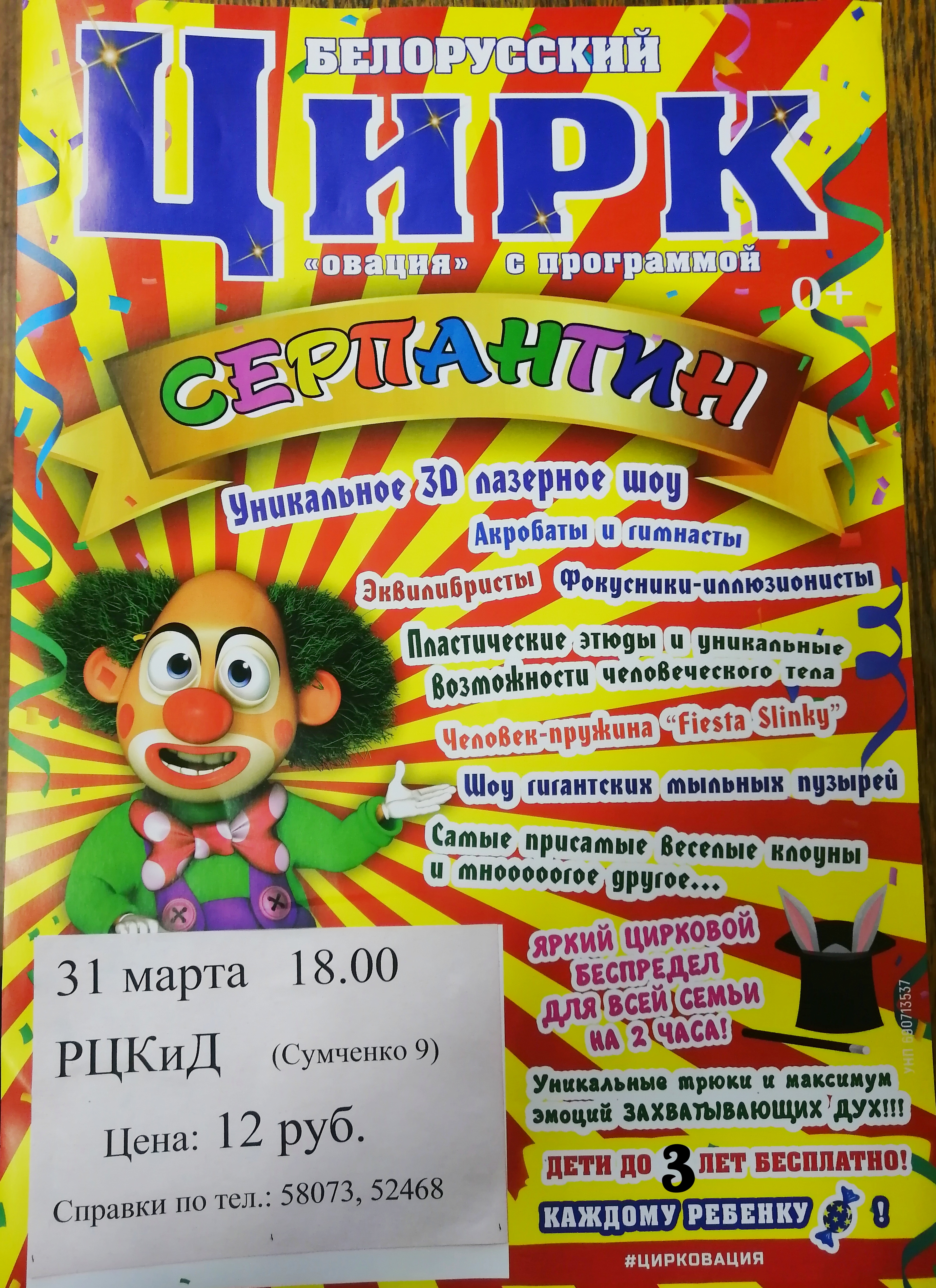 31 марта в районном Центре культуры и досуга состоится цирковая программа "Серпантин"