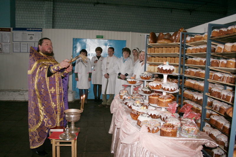 Учора, 29 красавіка, напярэдадні Вялікадня на Асіповіцкім хлебазаводе адбылося традыцыйнае асвячэнне кулічоў. Благачынны Асіповіцкай акругі протаіерэй Васіль Белавус таксама блаславіў хлебапёкаў на працу “са светлай радасцю ў сэрцы”.