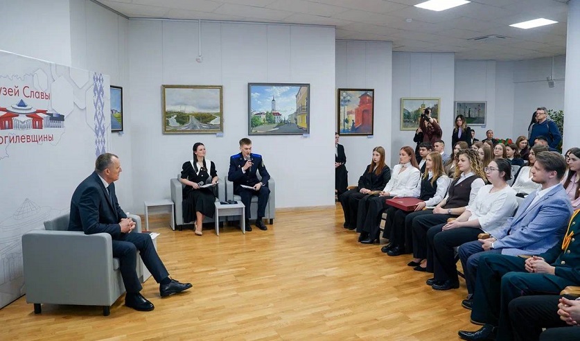 Вместе с ним мероприятие в Музее славы Могилевщины модерировала молодой педагог из Белыничей. Для Кирилла это не первый опыт публичных выступлений: активная жизненная позиция, заложенная еще в школе, получила развитие в студенческие годы во время учебы на следственно-экспертном факультете Академии МВД Республики Беларусь.