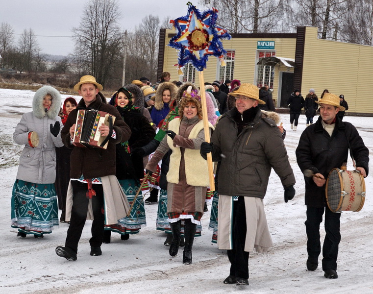 Пачалося калядаванне з шэсця ўдзельнікаў па вуліцах Карытнага. Падчас яго самадзейныя артысты заходзілі ў хаты да жыхароў вёскі і ладзілі там сапраўдныя майстар-класы па пастаноўцы абавязковай часткі святочнай праграмы: правя-дзенні вясёлага тэатралізаванага прадстаўлення пра Казу і Мядзведзя. Месцам збору калядоўшчыкаў была вызначана пляцоўка каля мясцовага Дома культуры. Тут яны пелі, танцавалі, ладзілі розныя гульні. Калі ж у канцэртнай зале сабраліся гледачы, гаспадары сцэнічнай хаты Васіль і Ганна выйшлі з СДК з падносам калядных пры-смакаў і запрасілі гасцей і ўдзельнікаў “Шчадровак” на святочны канцэрт. Па яго заканчэнні з падзякамі і віншаваннямі прыхільнікам фальклору выступілі намеснік старшыні райвыканкама Аляксандр Шаўлюга, начальнік аддзела культуры Ірына Раманчук і старшыня Карытненскага выканкама Тамара Сташэў-ская, а кіраўнікі народных калектываў атрымалі дыпломы і падарункі за зберажэнне народных традыцый.