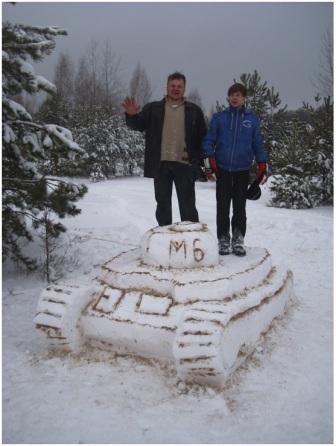Охватившая Беларусь игровая танкомания — "Снежные Танки Онлайн" — не обошла стороной и Осиповичи. Одними из первых слепили свой снежный танк и представили на суд зрителей Михаил и Александр ТЕРЕБИЛЬНИКИ. Сын и отец потрудились от души: уменьшенная снежная копия американского танка М6 получилась на славу и потребовала — всего-то! — 6 часов непрерывной работы.