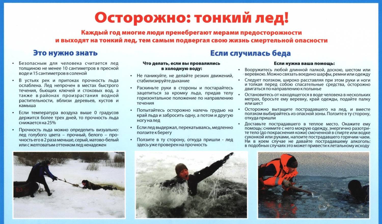 Учитывая возросшую опасность в период становления (толщина более 7 см) и разрушения льда, в районе вводится запрет на нахождение граждан на водоёмах! Берегите жизнь!