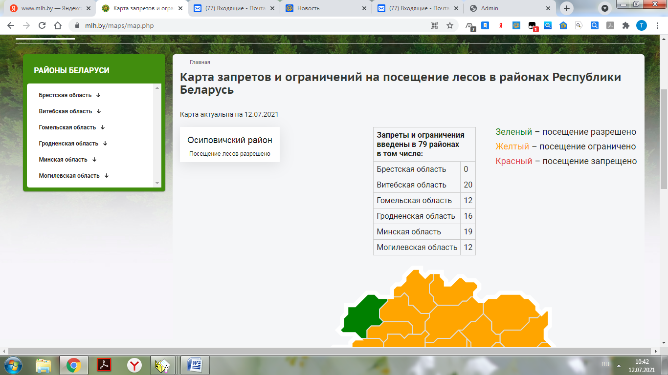 В Осиповичском районе на сегодняшний день нет запрета на посещение лесов. На сайте Минлесхоза можно ознакомиться с картой запретов и ограничений на посещение лесов