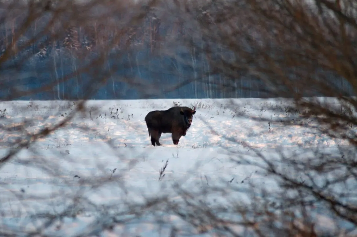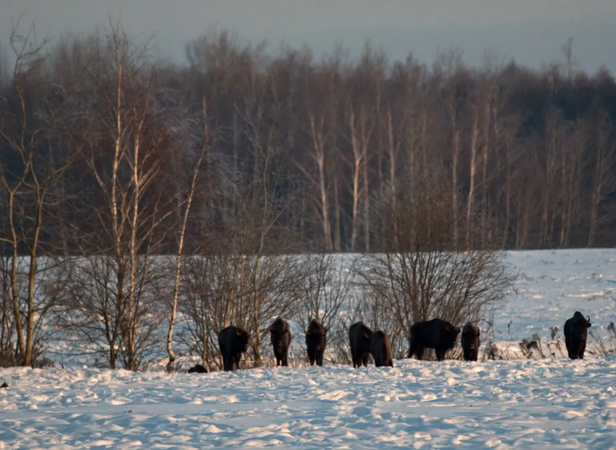 Разумеется, зубры предпочитают держаться незамеченными, вдали от человеческого жилья.