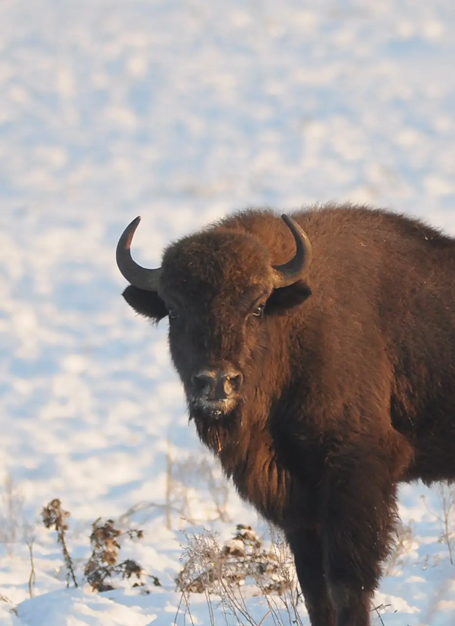 Действительно, нынешние суровые погодные условия серьезно усложнили жизнь крупным травоядным животным. Зубры не могут добыть себе пропитание из-за значительной высоты снежного покрова: не удается раскопать копытом так глубоко, чтобы добыть достаточное количество коры, хвои, лишайников, желудей и т.д. Потому и вынуждены идти к населенным пунктам, где больше шансов найти что-то съестное. Кроме того, зимой зубры сбиваются в более крупные стада.