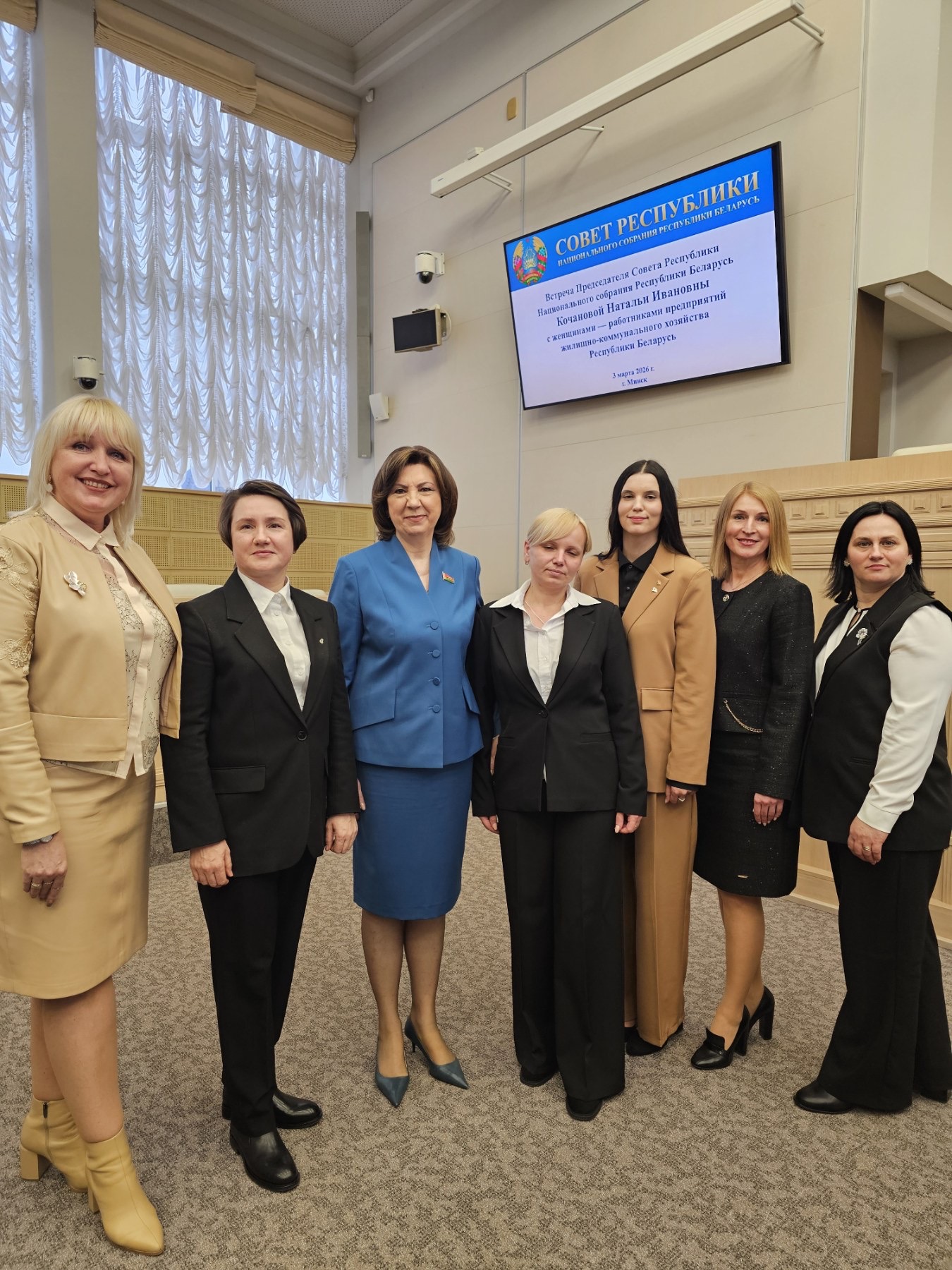 В Совет Республики Национального собрания 3 марта со всех регионов страны приехали удивительные женщины. Те, от кого ежедневно зависят чистота, порядок и комфорт в наших домах и городах. Те, чей труд мы видим каждый день, но чью ценность порой невозможно переоценить. На один день они сменили рабочую форму на яркие нарядные платья и заняли место главных героинь торжественной встречи.