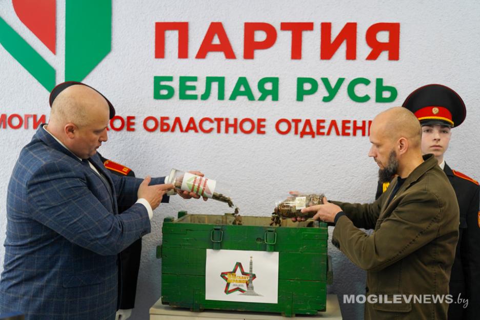 Могилевское областное отделение партии «Белая Русь» передало в фонд Алексея Талая монеты для создания памятного знака. Фото