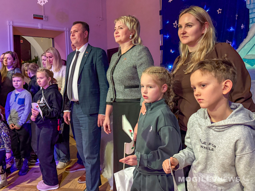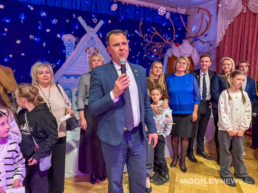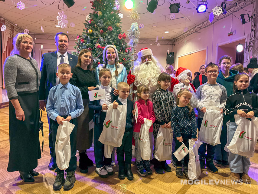 Программа праздника погрузила детей и их родителей в мир чудес с первых минут. Вместе они посмотрели добрый и мудрый спектакль «Про Емелю и Щуку-волшебницу», который унес зрителей в мир народной сказки, где доброта и смекалка всегда побеждают. А после представления, под сияющей огнями новогодней красавицей-елкой, развернулось яркое интерактивное шоу с веселыми хороводами, играми и поздравлениями. Поздравить ребят пришел не только руководитель областного отделения партии «Белая Русь», но и руководители районных отделений: Ленинского и Октябрьского районного отделения г. Могилева Алеся Дудкова и Петр Соловьев, Могилевского районного отделения Наталья Комарова, Белыничского районного отделения Галина Наливайко, Круглянского районного отделения Светлана Матюшевская, а также представители штаба молодежного движения «Искра» и секретариата Валентина Шергилашвили и Александра Ващенка.