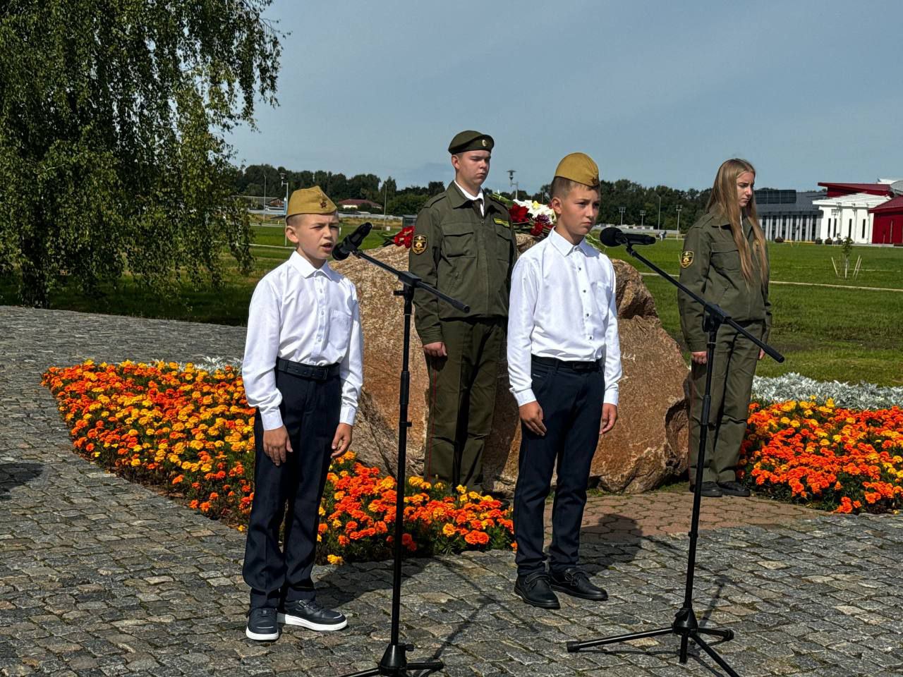 В этот день на этом памятном месте в исполнении учащихся школ города Могилева звучали стихотворения писателя и песни, напоминающие о ценности мира.
