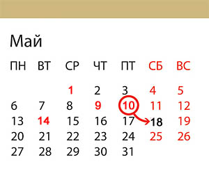 Так, рабочий день с пятницы 10 мая 2013 года переносится на субботу 18 мая текущего года.
