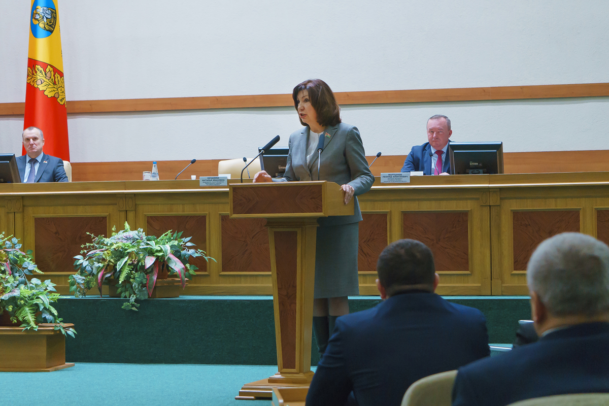 Яна нагадала, што асноўныя напрамкі і прыярытэты развіцця краіны на пяцігодку вызначаны на VІ Усебеларускім народным сходзе, а таксама дзяржаўнымі праграмамі, якія працуюць у Рэспубліцы Беларусь. «Мы бачым, што ў 2022-м годзе, нягледзячы на беспрэцэдэнтны санкцыйны ціск, на праблемы, з якімі давялося сутыкнуцца пры рэалізацыі прадукцыі прадпрыемстваў, эканоміка нашай краіны спрацавала дастойна, - падкрэсліла старшыня Савета Рэспублікі. - Прадпрыемствы і арганізацыі працуюць стабільна, людзі маюць магчымасць працаваць, заработная плата выплачваецца. Наша прадукцыя пастаўляецца на экспарт, забяспечана ўнутраная харчовая бяспека. У гэтым годзе з поўнай аддачай спрацавалі аграрыі - за што ім нізкі паклон.