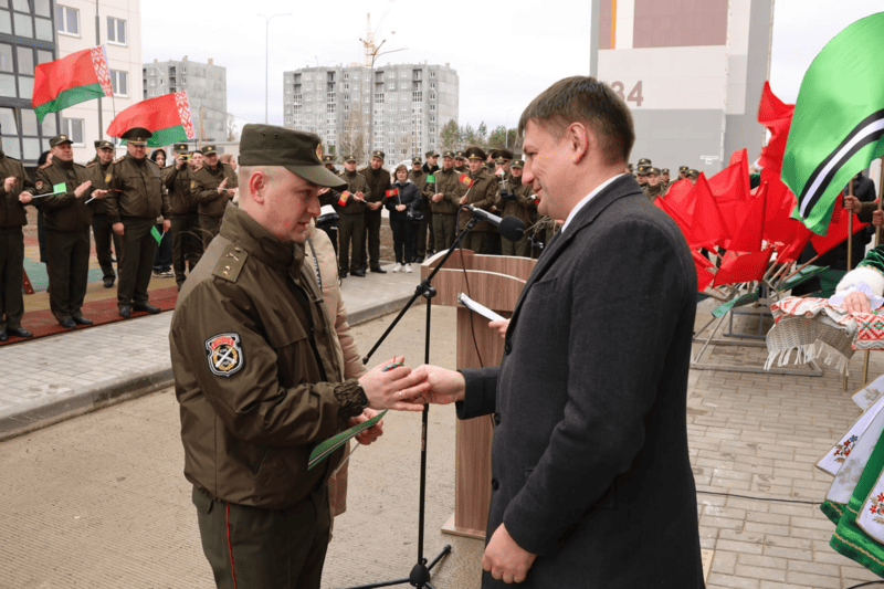 Чарговае радаснае мерапрыемства адбылося сёння па адрасе вул. Крыловіча, 32. У новым 72-кватэрным доме, падведамным Міністэрству абароны Рэспублікі Беларусь, будуць жыць прадстаўнікі ўсіх воінскіх часцей і падраздзяленняў Асіповіцкага гарнізона.