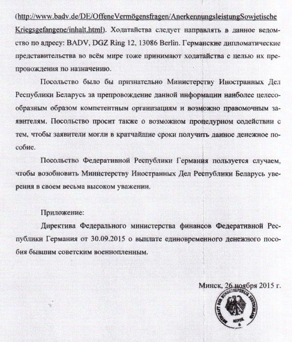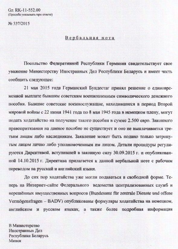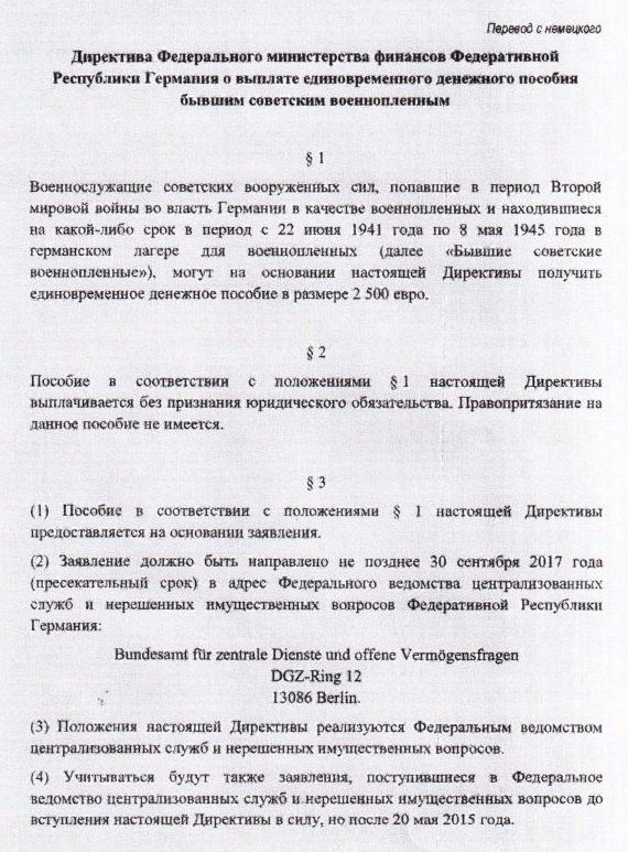 О выплате единовременного денежного пособия бывшим советским военнопленным