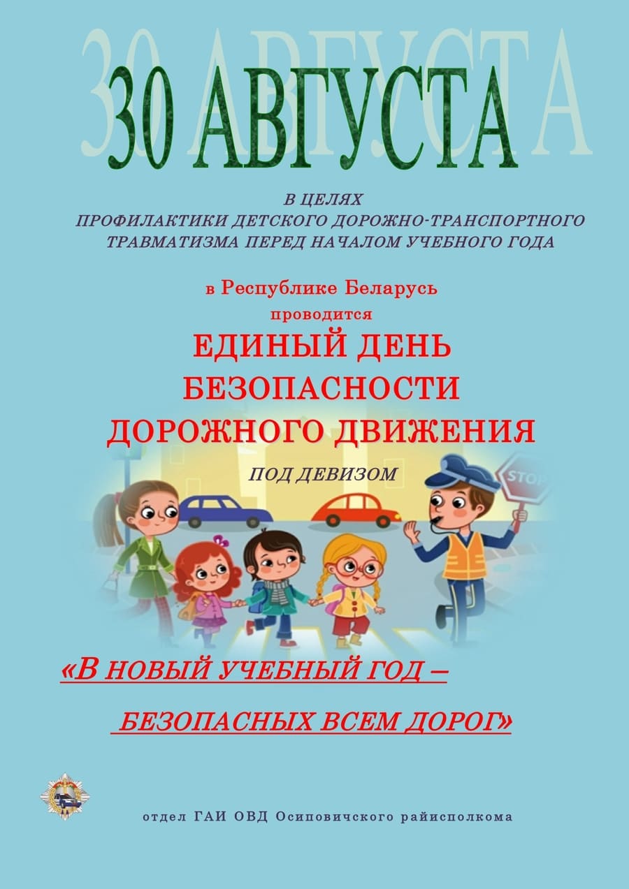 30 августа будет проводиться Единый день безопасности дорожного движения «В новый учебный год – безопасных всем дорог!».