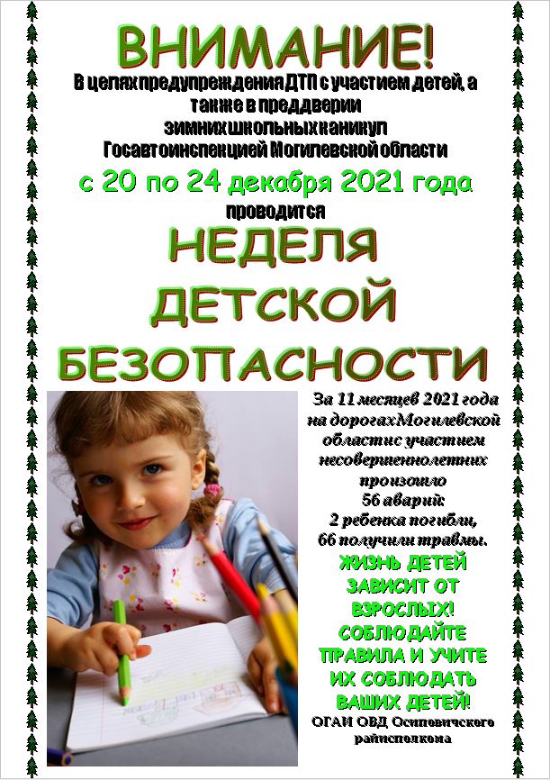 Информационные материалы для проведения профилактической работы в рамках «Недели детской безопасности» (20-24 декабря)
