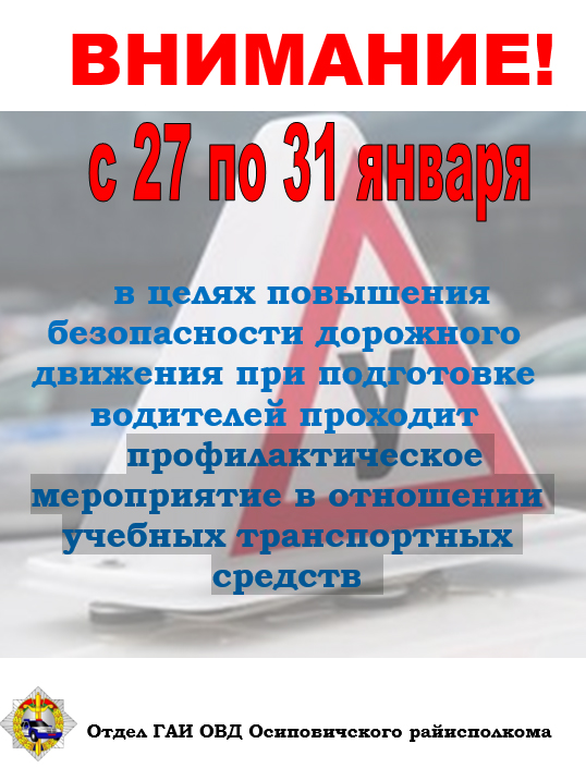 Профилактическое мероприятие в отношении учебных транспортных средств пройдет в Осиповичском районе 27-31 января