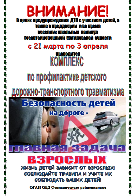 С 21 марта по 3 апреля 2022 года ГАИ Могилевской области проводит комплекс по профилактике детского дорожно-транспортного травматизма