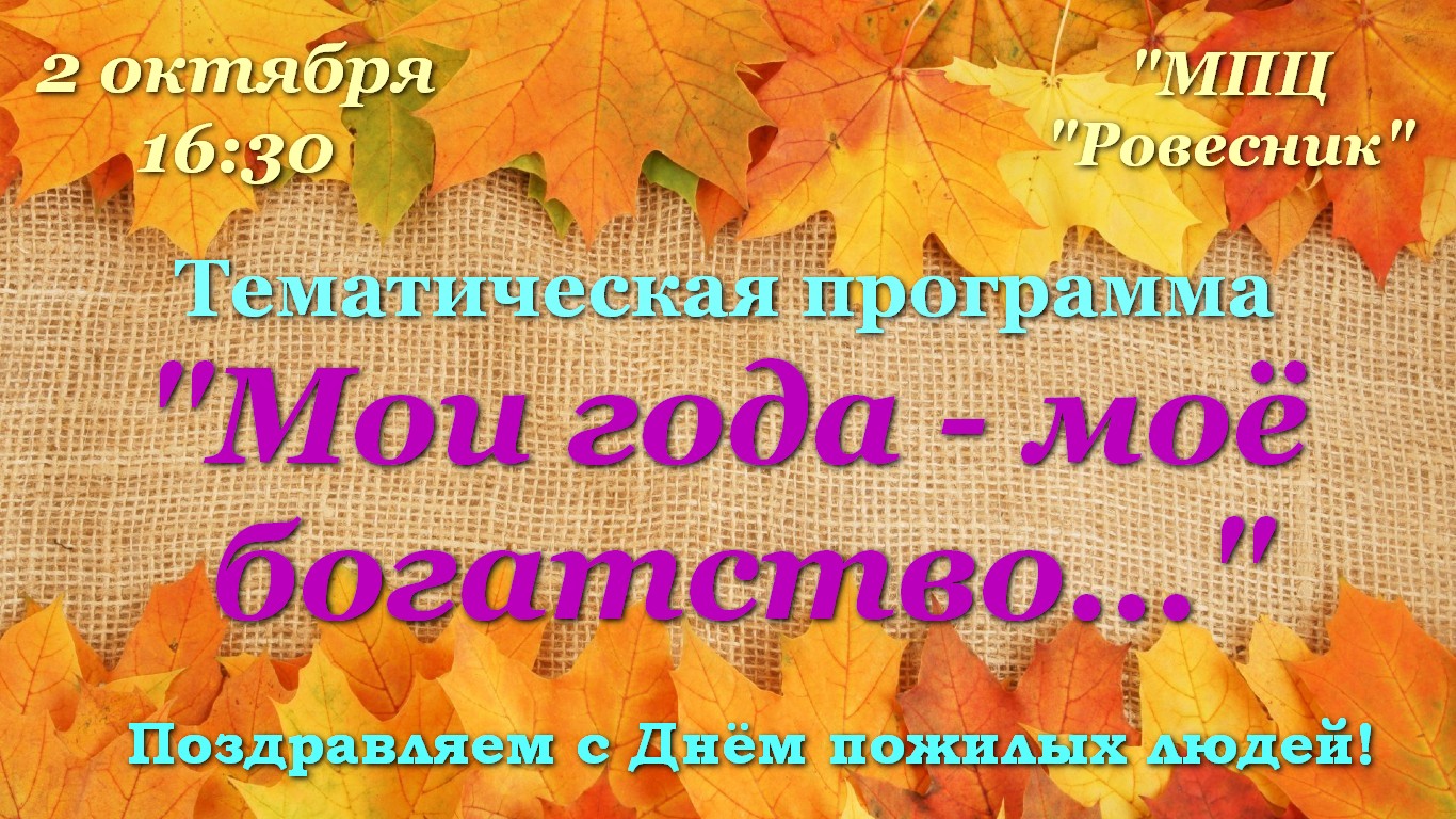 2 октября в 16.30 в МПЦ "Ровесник" состоится тематическая программа "Мои года - моё богатство"