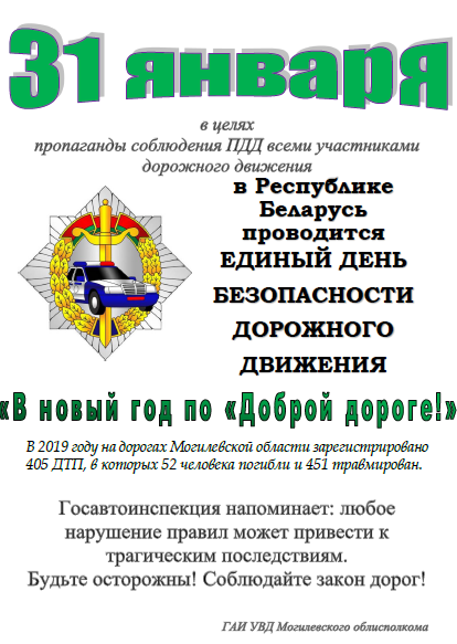 Единый день безопасности дорожного движения пройдёт в Беларуси 31 января