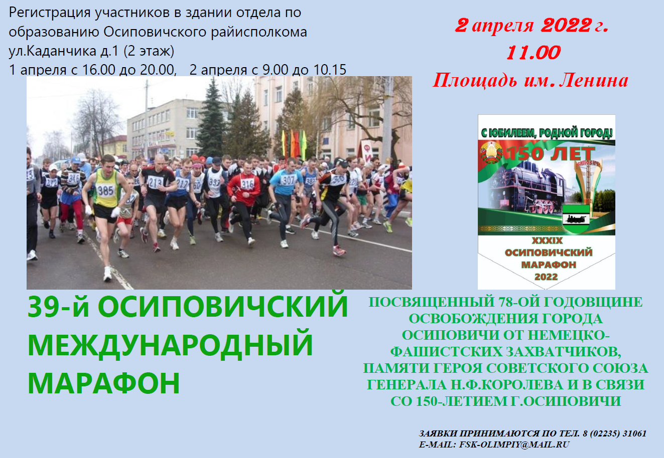 Международный "Осиповичский марафон" пройдет в этом году 2 апреля 2022 года