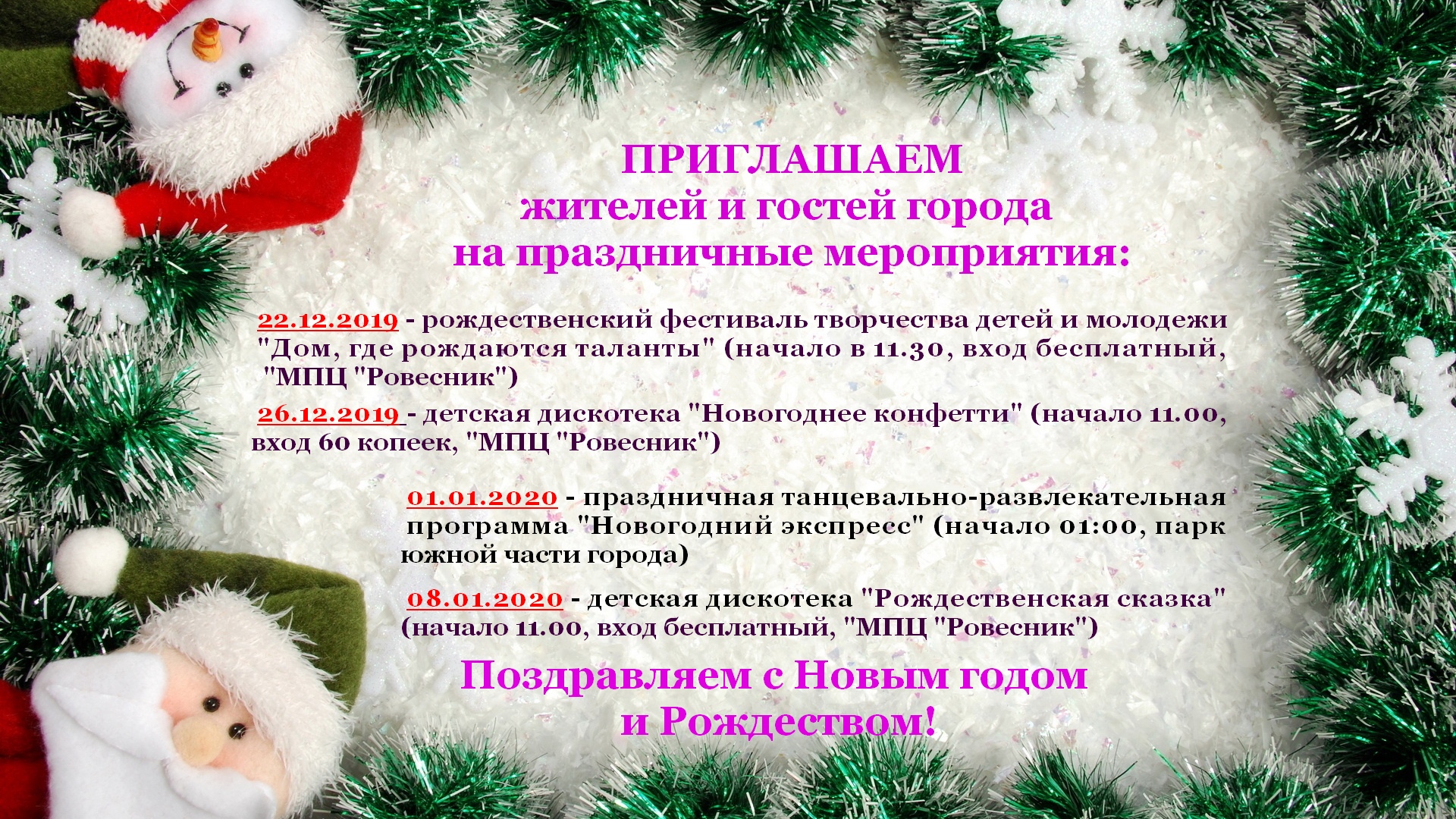 МПЦ "Ровесник" приглашает на Рождественские и Новогодние праздники!