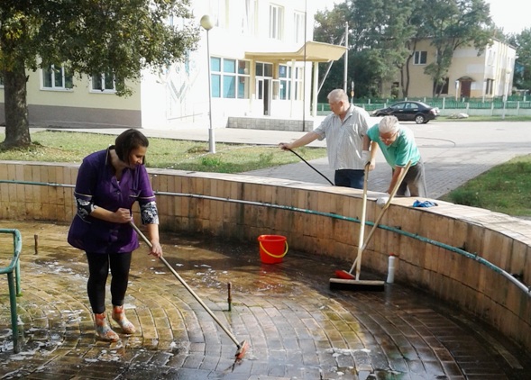 У напружаным рытме ішлі работы і на фізкультурна-аздараўленчым комплексе па вуліцы Юбілейнай у райцэнтры. Тут увага надзялялася ўборцы памяшканняў, напрыклад, мыццю тых жа басейнаў, вокнаў. На гэтым аб’екце працавалі прадстаўнікі райвыканкама, КУДП “Капітальнае будаўніцтва”, ДУКВП “Водаканал”. I на спартыўным комплексе гэта не апошні суботнік.