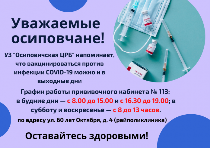 Для сохранения здоровья населения прививочный кабинет в районной поликлинике работает и в выходные дни