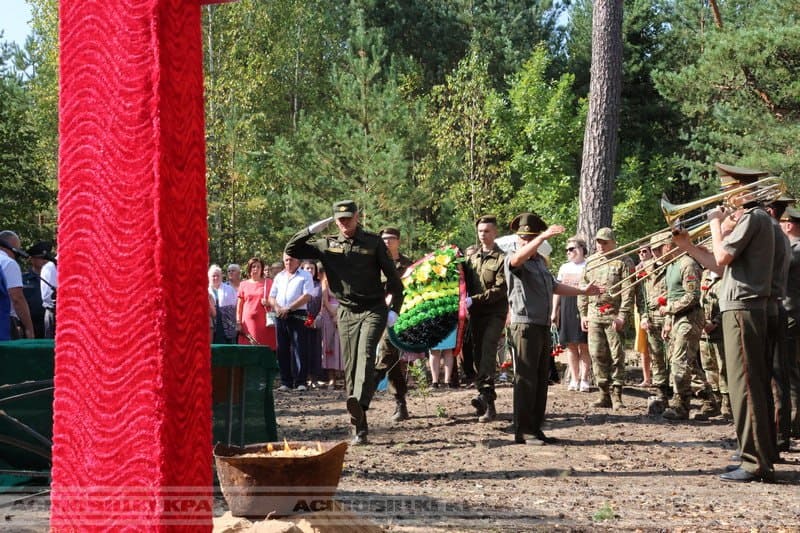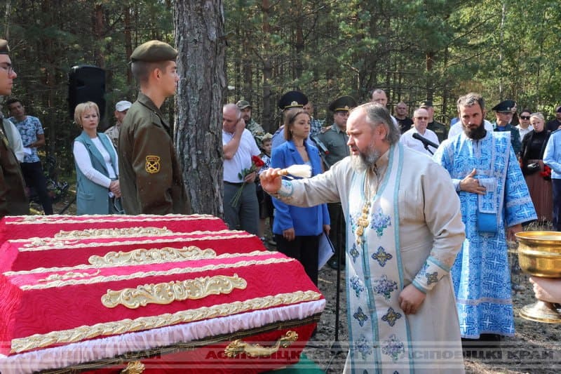 Церемония перезахоронения прошла сегодня около деревни Кохоновка. Останки воинов были найдены военнослужащими 52-го отдельного специализированного поискового батальона Министерства обороны Республики Беларусь и участниками областного историко-патриотического поискового клуба «Виккру» и подняты этим летом в ходе поисковой экспедиции «Рейд – 2024».