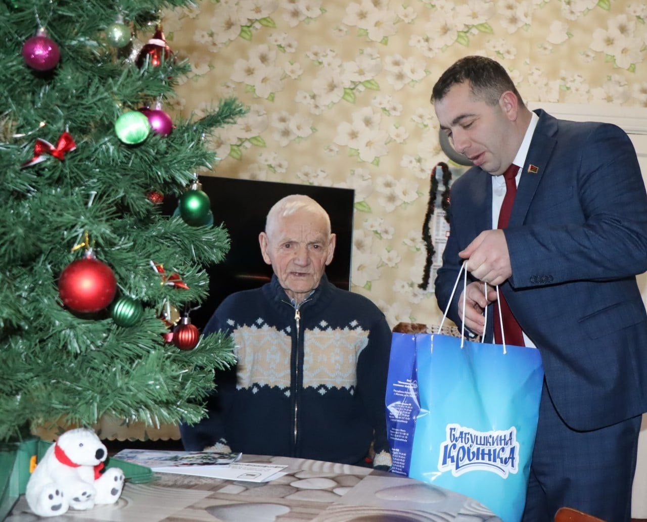Глава района вручил ветерану поздравления от председателя Могилёвского областного исполкома Анатолия Исаченко и от Осиповичского райисполкома, а также новогодние подарки.
