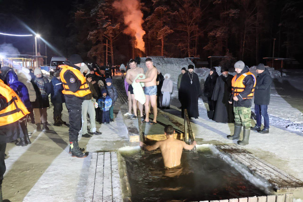 Водосвятный молебен и хождение на Иордань в Крещенский сочельник прошли на городском пляже на Осиповичском водохранилище.