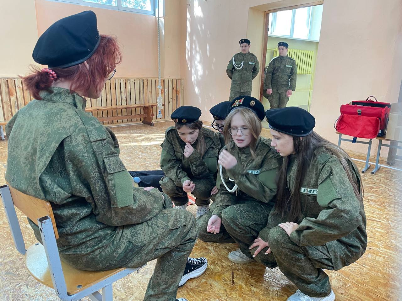 Девушки не уступают парням в решительности и точности действий, особенно в медицинском блоке.