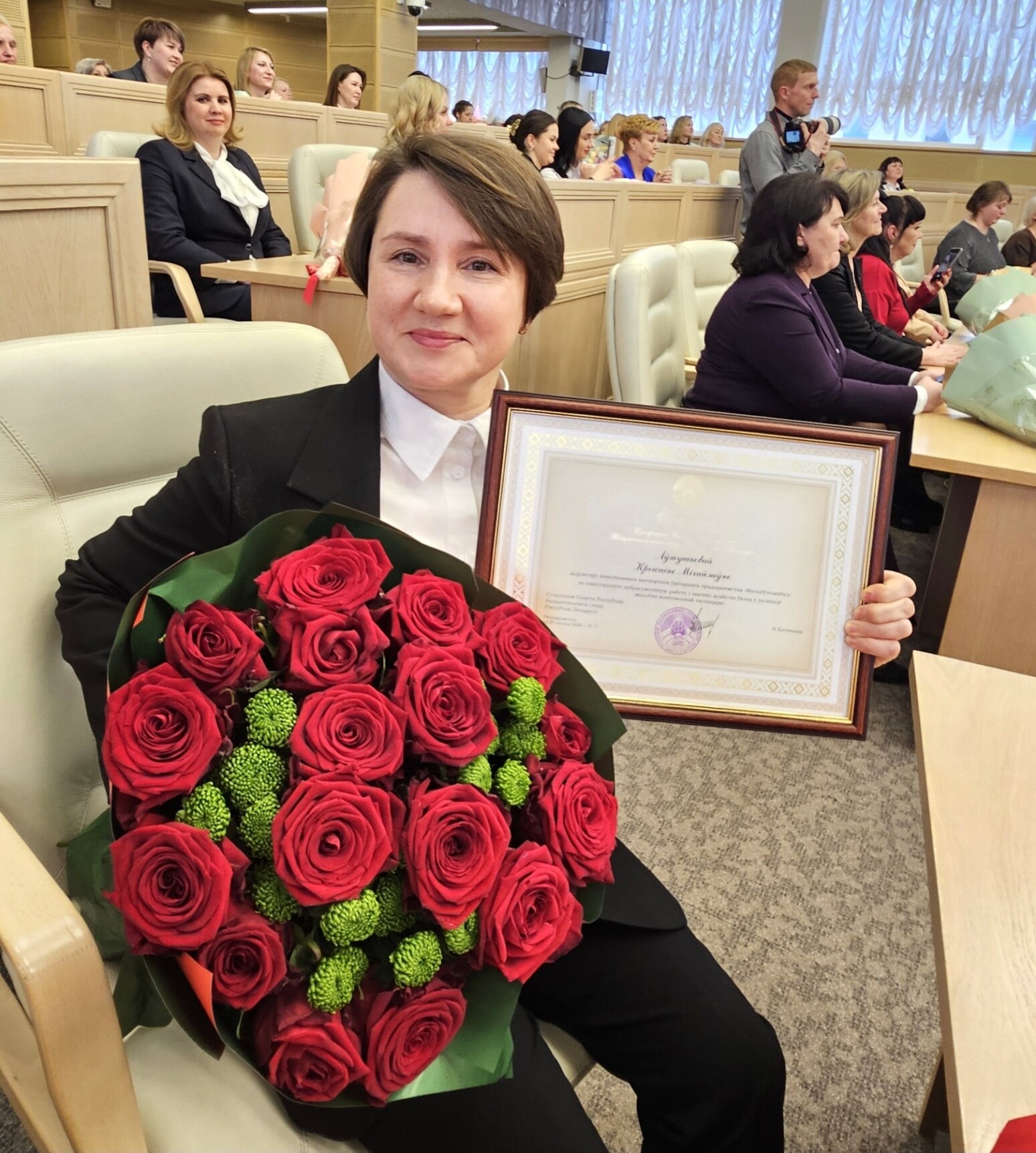 67 представительниц сферы жилищно-коммунального хозяйства — а это люди самых разных профессий: от дворников и уборщиц до руководителей крупных предприятий — собрались под сводами верхней палаты белорусского парламента. Мероприятие стало ярким событием в рамках Года белорусской женщины.