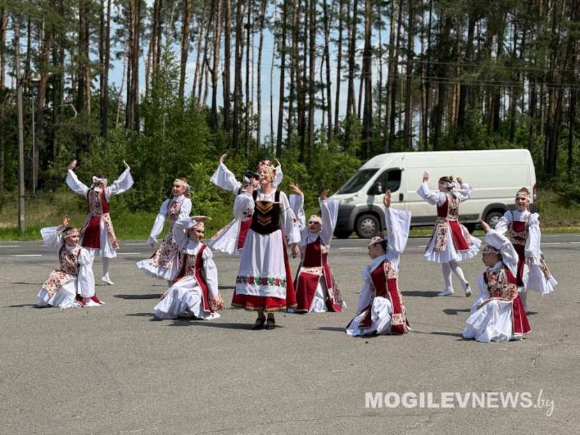 На въездном знаке «Речица» организаторы форума хлебом-солью и народными танцами встретили гостей из Приднепровского края.