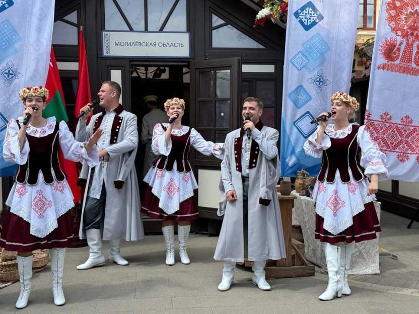 Гостей в белорусских павильонах встречают хлебом-солью, танцами и песнями. К слову, в павильоне Могилевской области вкусно и, конечно же, празднично — творческие коллективы региона представляют свою культурную программу.
