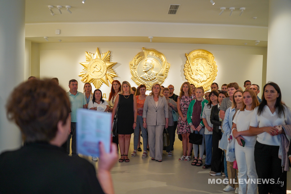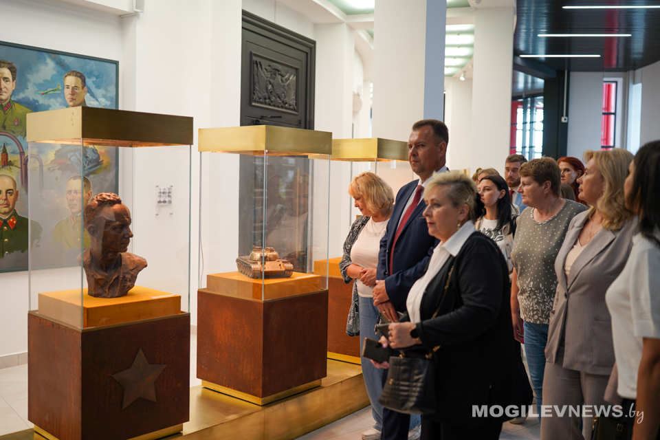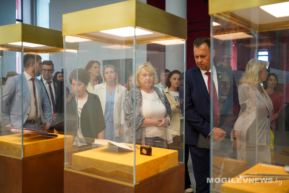Участники мероприятия ознакомились с выставочными экспозициями музея. А затем, в белом зале Музея Славы Могилевщины Юрий Машин вручил директору областного краеведческого музея имени Е.Р. Романова книгу Ольги Малышевой «Поколение победителей», изданной в рамках областного партийного проекта «Благодарим и помним».