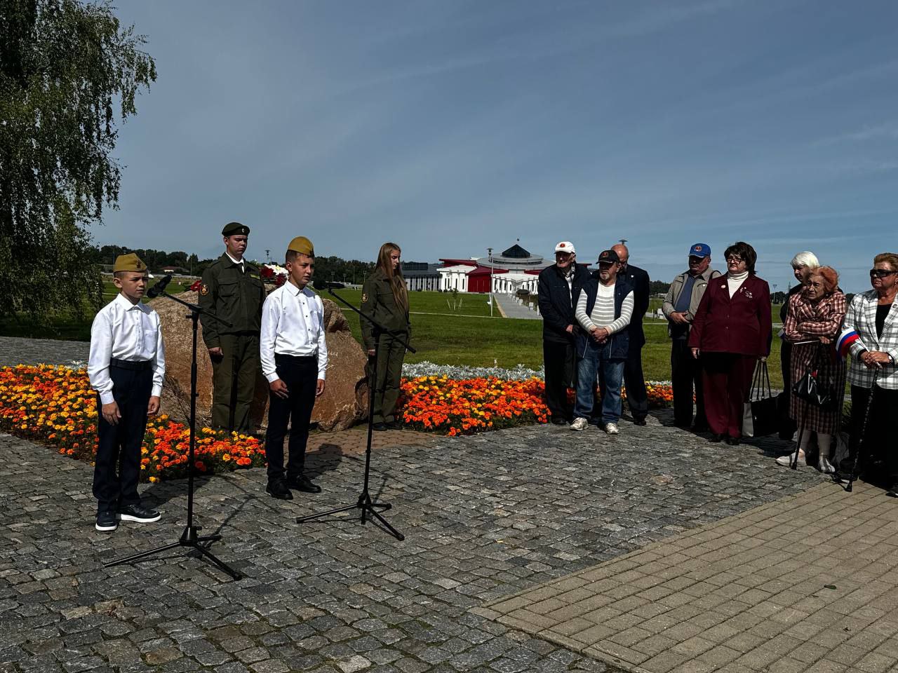 В этот день на этом памятном месте в исполнении учащихся школ города Могилева звучали стихотворения писателя и песни, напоминающие о ценности мира.