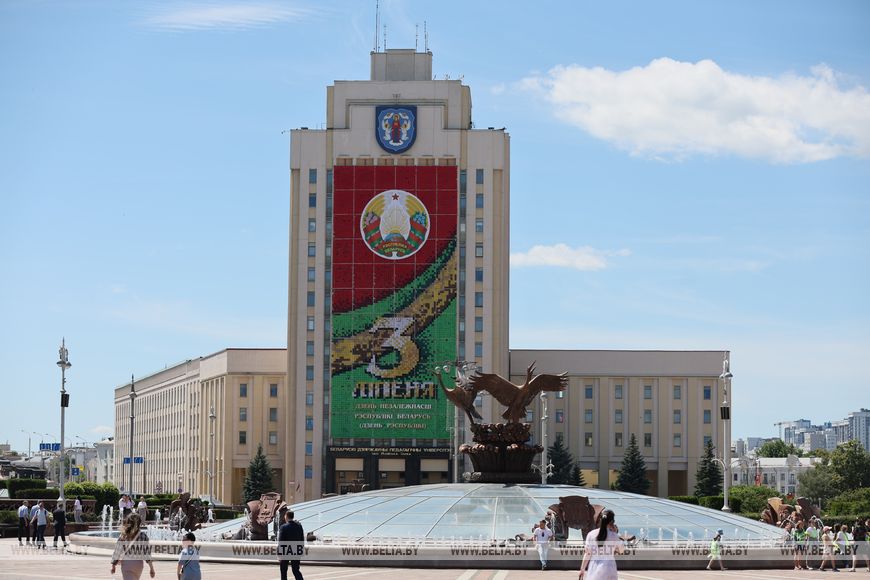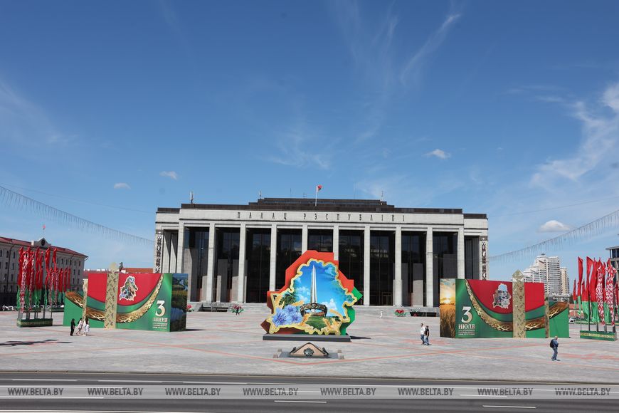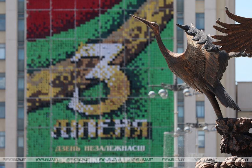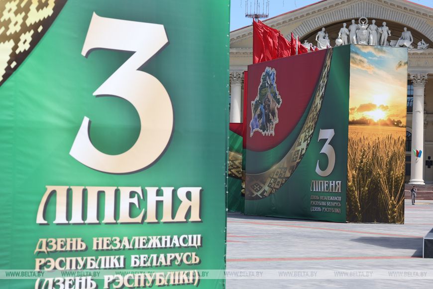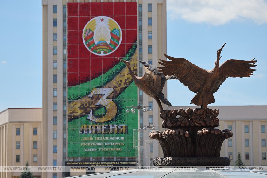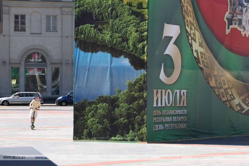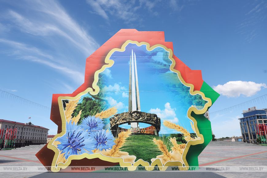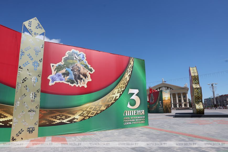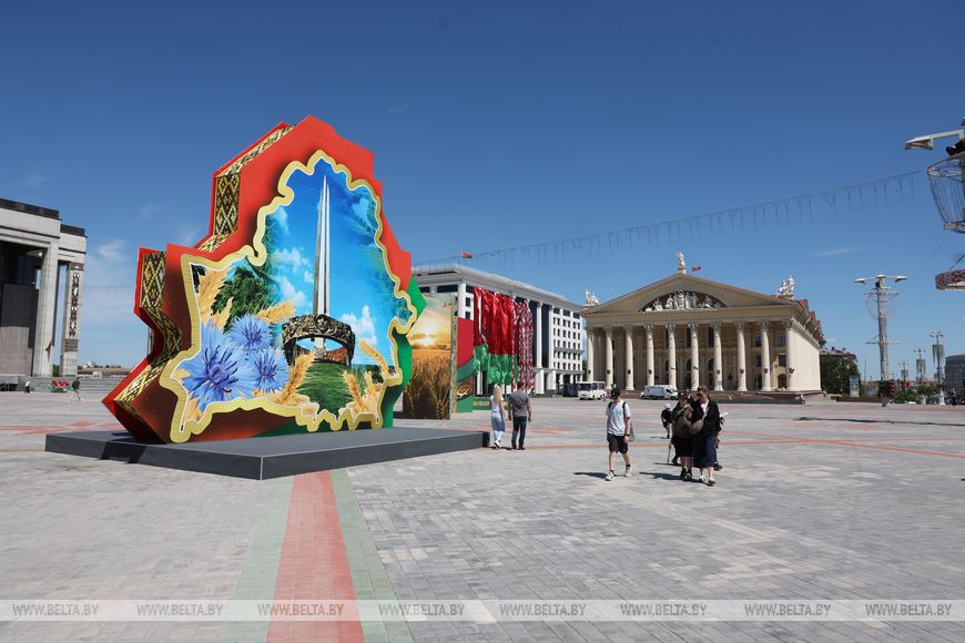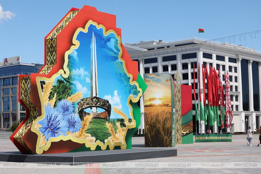 Главные площади и проспекты города Минска украсили в преддверии Дня Независимости. На улицах установлены тематические стенды и фотозоны.
