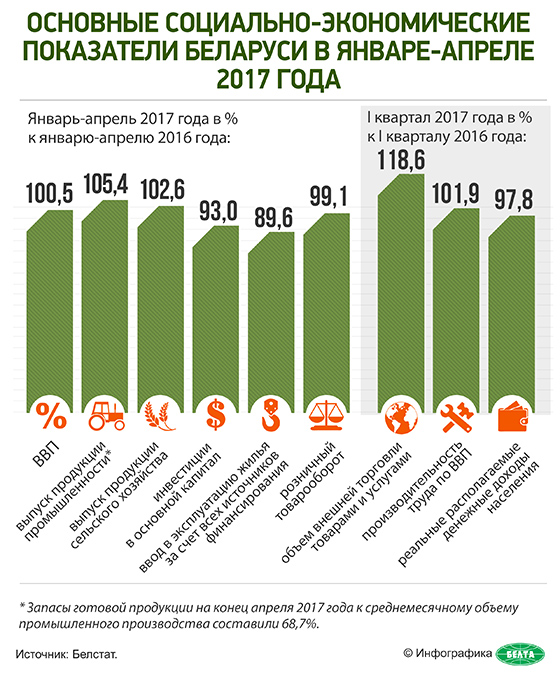 Основные социально-экономические показатели Беларуси в январе-апреле 2017 года